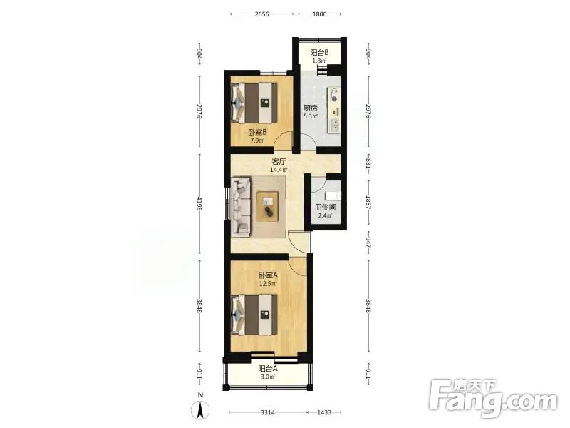 枣园小区 2室1厅 69.1平 边户明厅采光好南北通透无遮挡