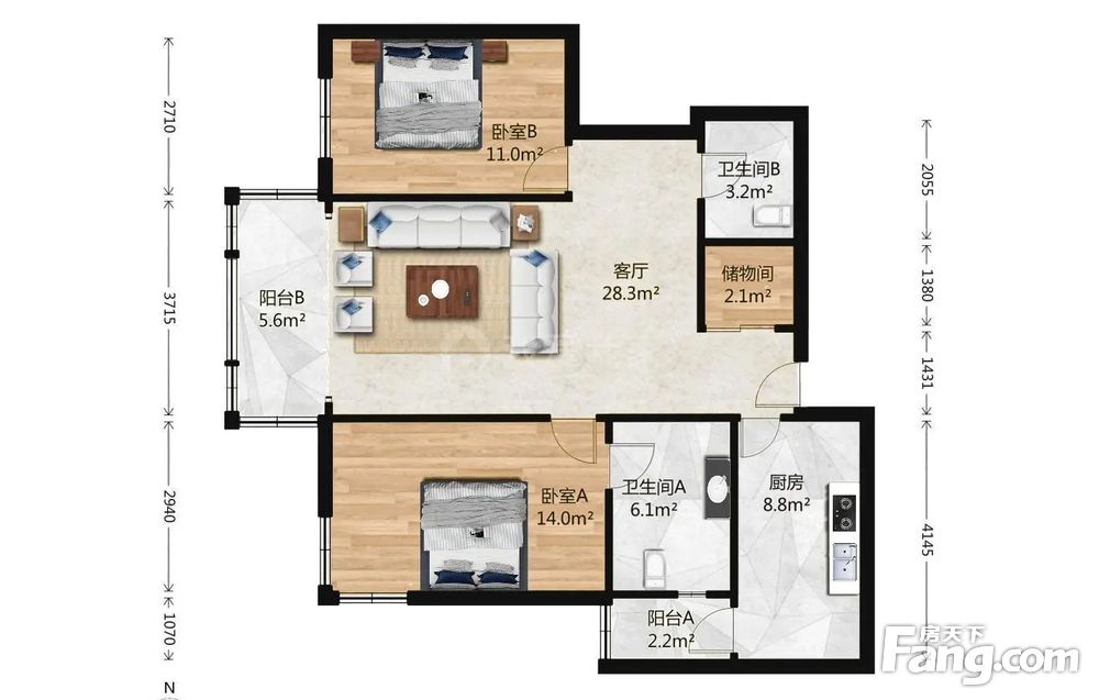 2室1厅2卫