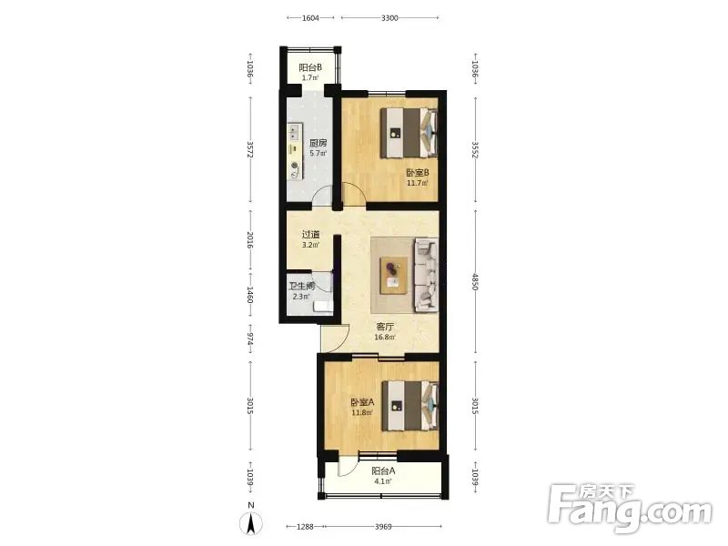 枣园东里 2室1厅 77.1平 南北通透户型方正采光好无遮挡