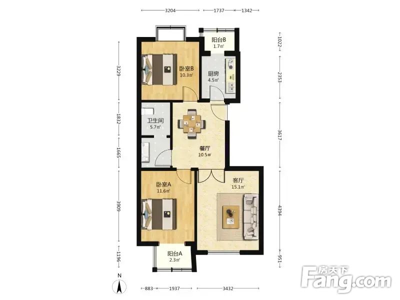 兴盛街189号院 2室2厅 84.95平 南北通透采光无遮挡