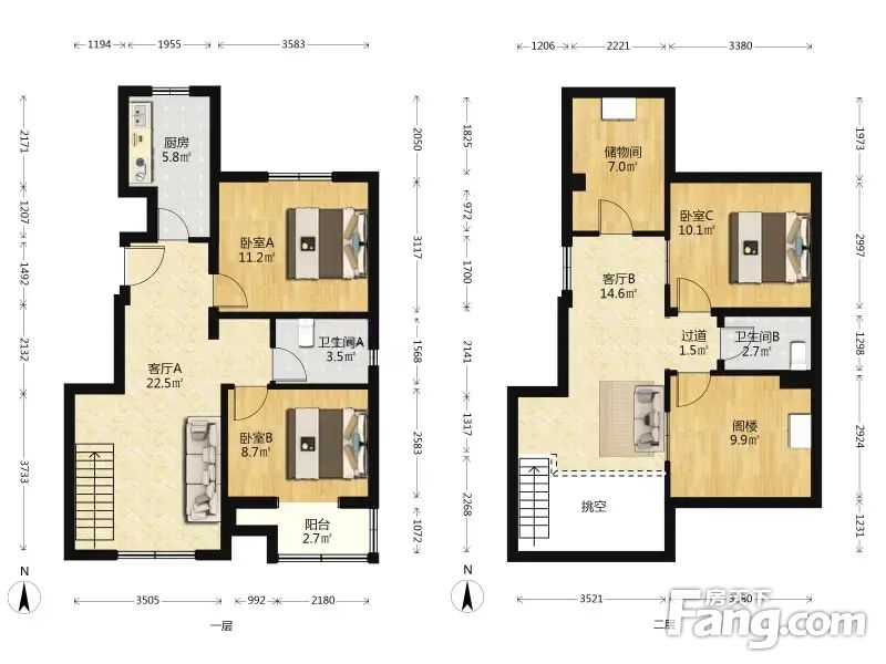 首座御园一期 2室1厅 77.12平 复式两层套内使用面积大