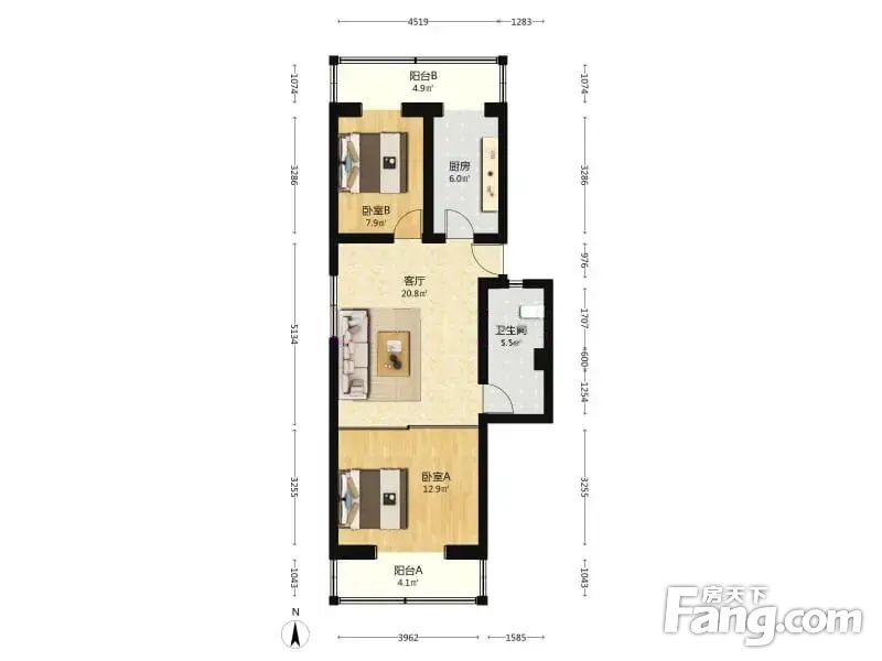 车站中里 2室1厅 81.89平 边户明厅采光好无遮挡双阳台