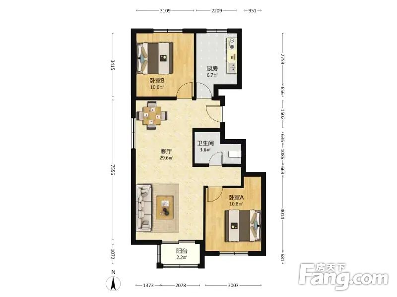 核心御园B边户民生路3号院通透全明两居室,设备齐全交通便利