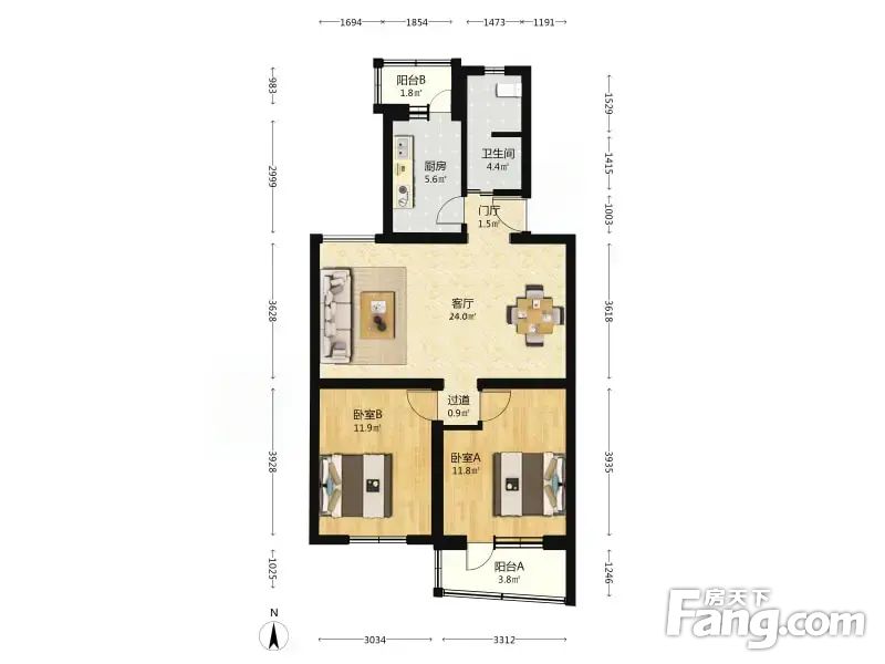 隆盛园 2室1厅 86.08平
