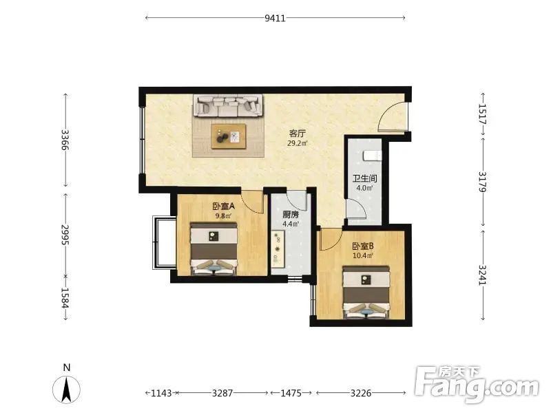 住总正华多彩嘉园 2室1厅 89.8平