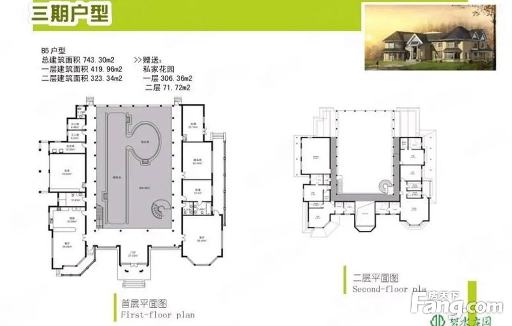 此房为碧水庄园B5户型.占地2400平.客厅200平.卧室都是套卧,使用面积1200平.适合做会所