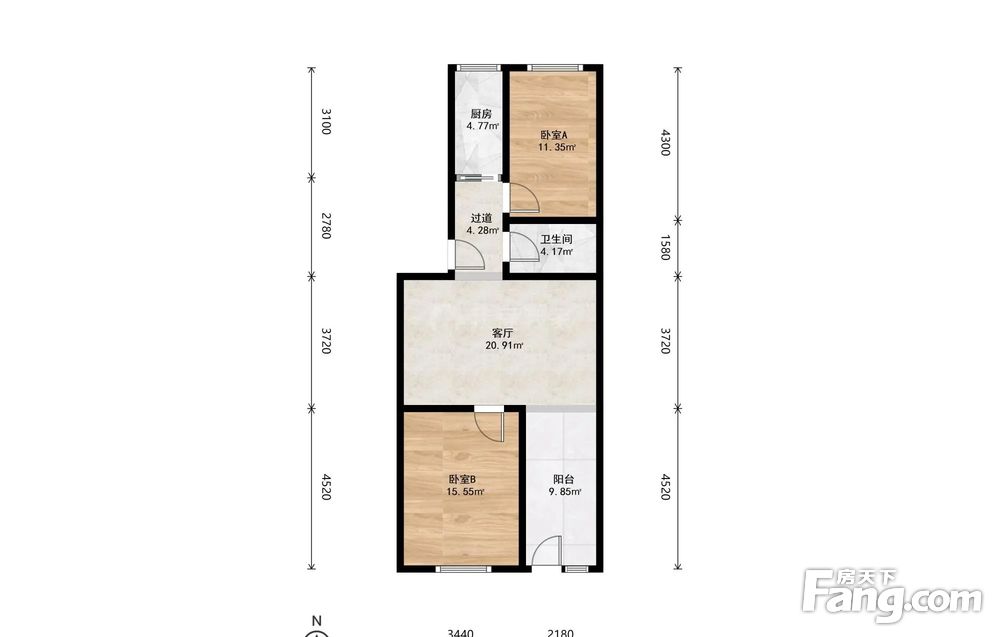 • 当前房源报价为:77.00万