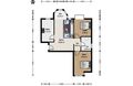 此房为南北向2室1厅1卫,南北通透,客厅南向八角落地窗,每个功能区都很方正,没有浪费面积,格局方正。