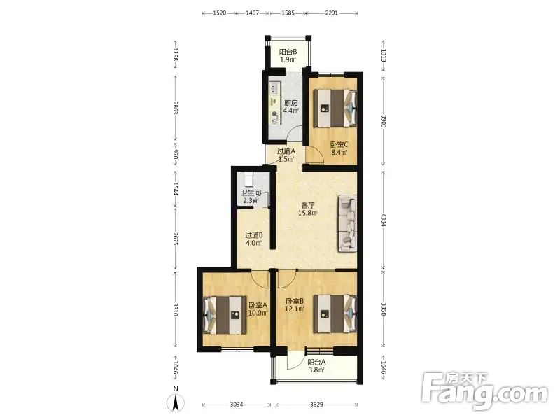 新凤小区 3室1厅 87.13平