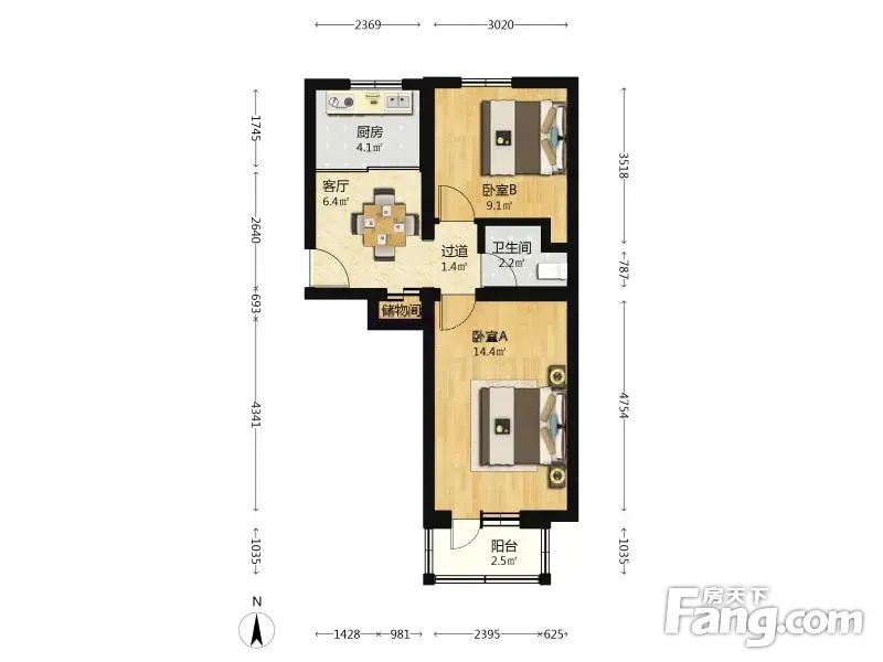 1.农行家属宿舍正规2室,精装修,户型:2室1厅,南北好位置。