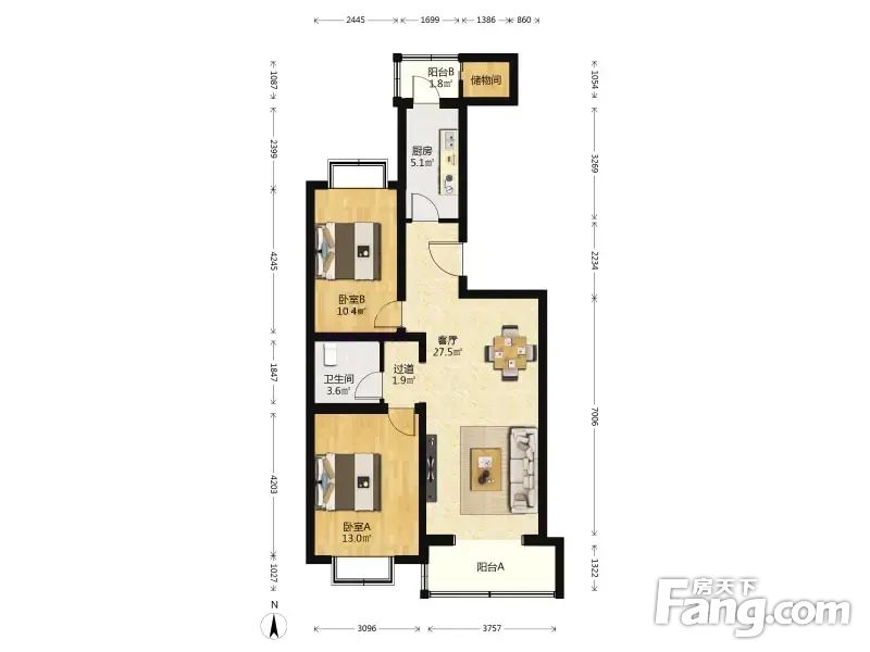 吕营嘉园C区 2室1厅 88.81平