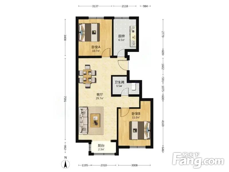核心此房,南北通透两居室,好位置远离高速