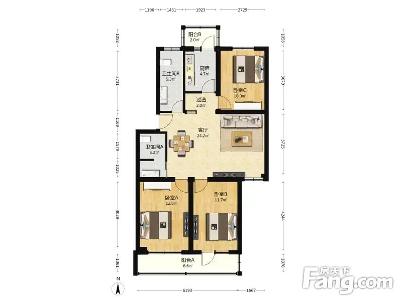 核心南北通透三居,户型方正,随时可签