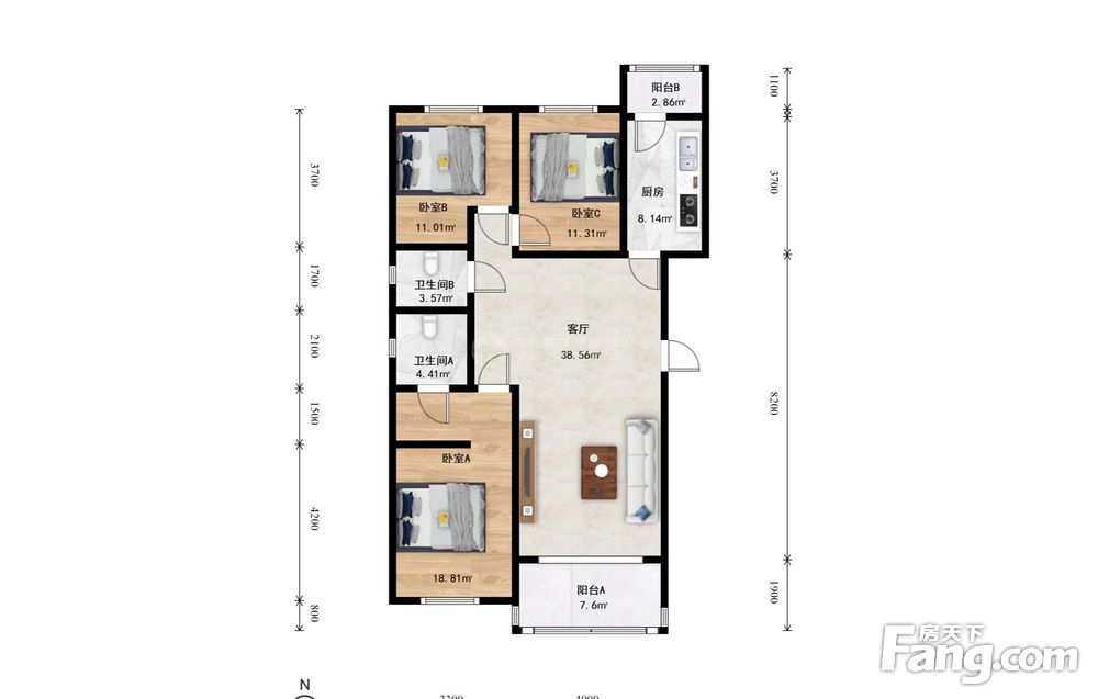 3室1厅2卫
