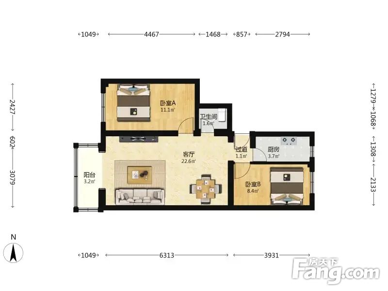 核心东西通透,适合年轻人居住,两居室