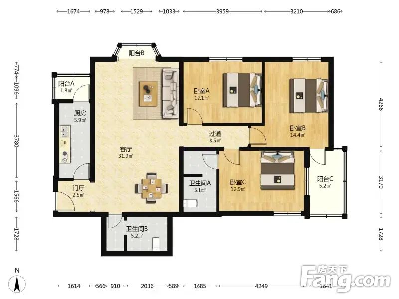 新悦家园 3室1厅 137.81平