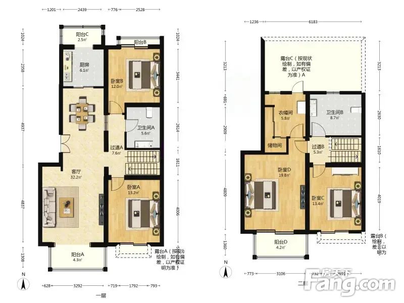 户型介绍本房是格林小镇的复式户型,一层为南向客厅、两卧室(南北各一间卧室)、厨房布局,二层为主次双卧朝南。