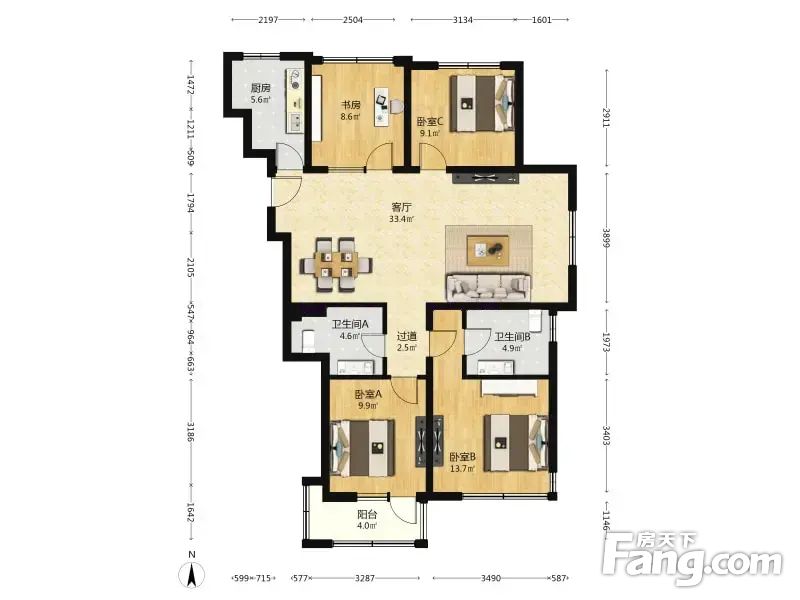 金地仰山西区 4室2厅 125.75平