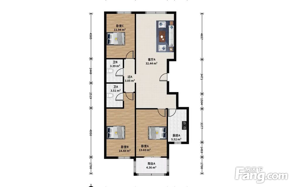 3室1厅2卫