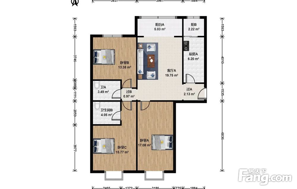 3室1厅2卫