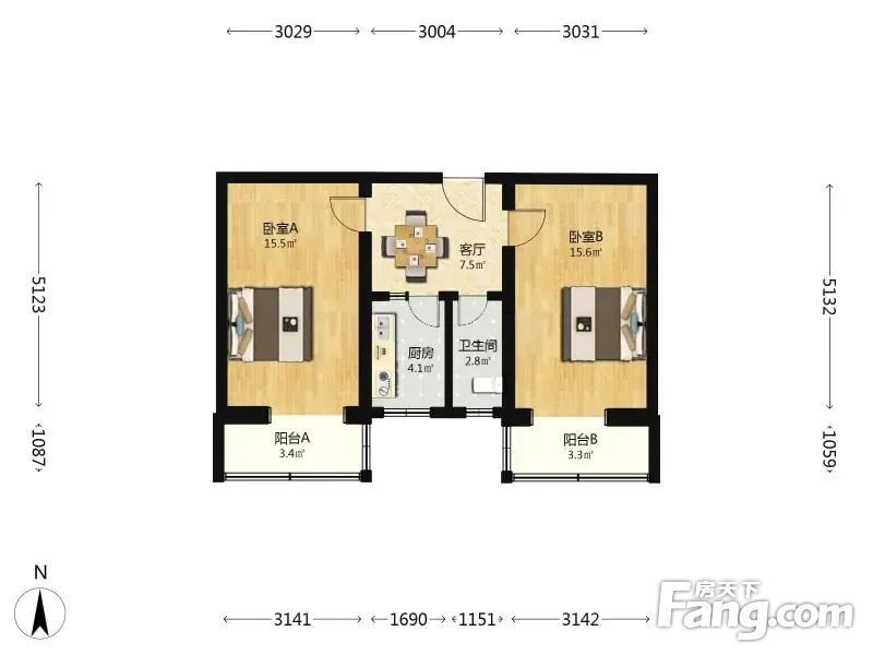 郝庄家园南区 2室1厅 69.49平