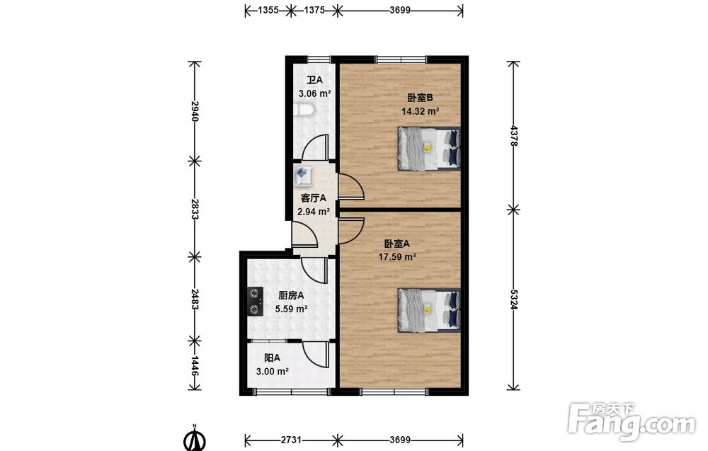 正规南北两居,苏式结构,层高3.3米。厨卫宽敞。