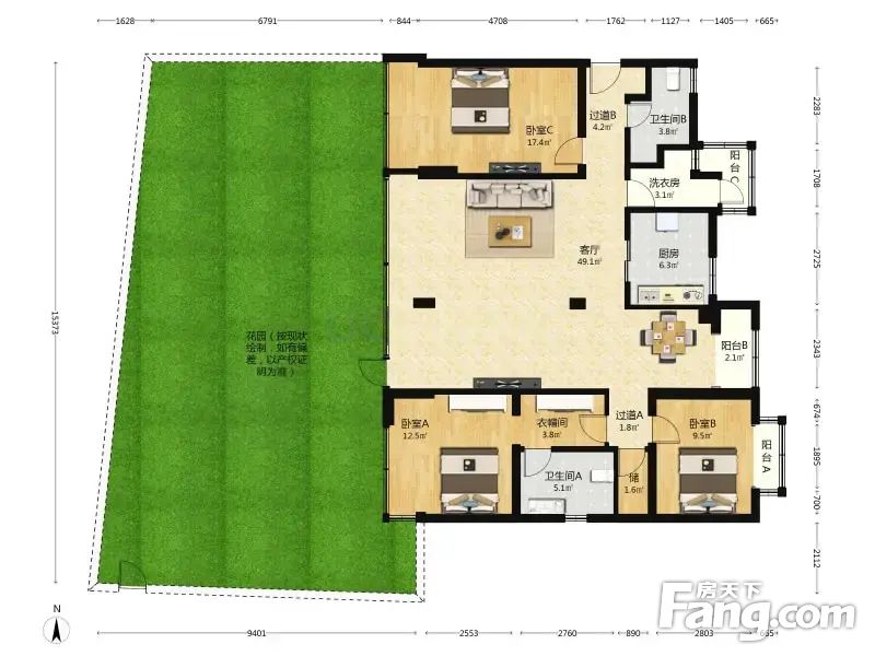 原生墅 3室1厅 145.59平