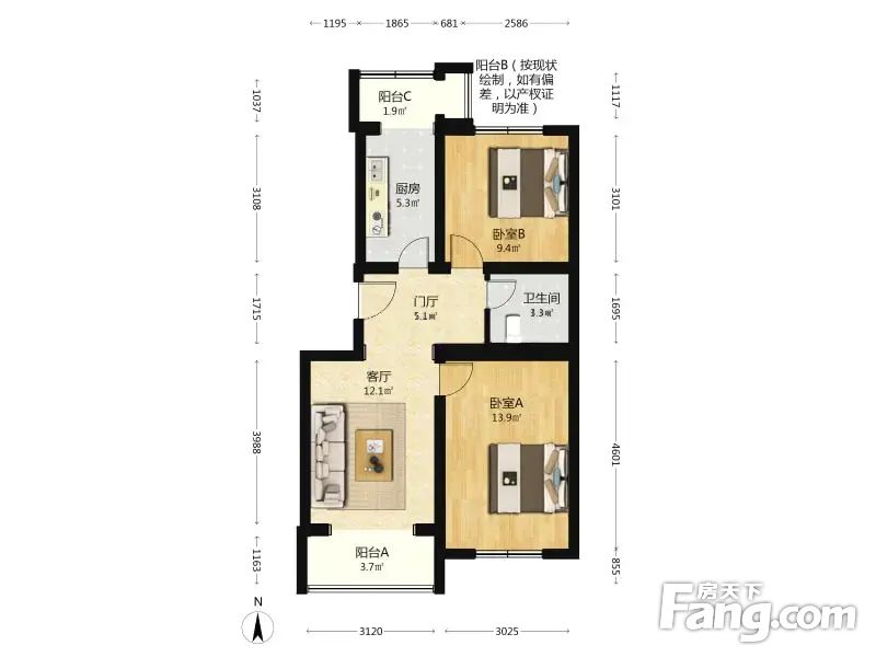 • 当前房源报价为:265.00万
