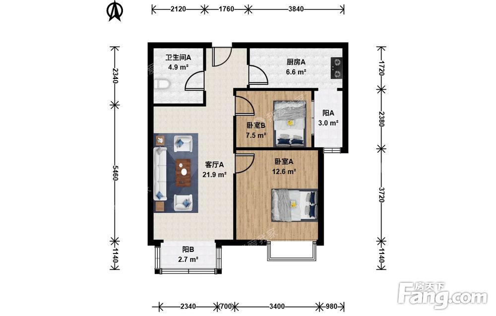 阎村·天恒乐活城北区电梯南向两居室