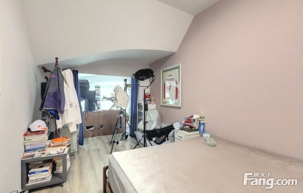 户型介绍房子建于2006年花园洋房社区此房是带电梯的顶层复式一层双卧朝南客厅朝北客厅面宽4米带有大阳台和大落地窗主卧室带有独立衣帽间和卫生间楼上二层是带有坡顶的屋顶带有一个朝南的卧室和一个朝北的书房另外还有两个独立储物空间