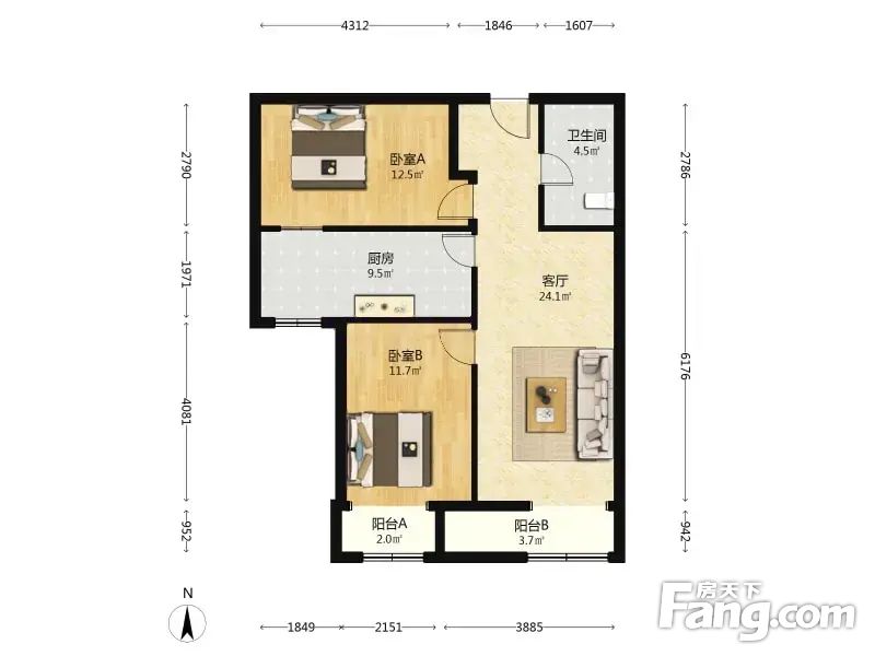 龙山华府 2室1厅 95.79平