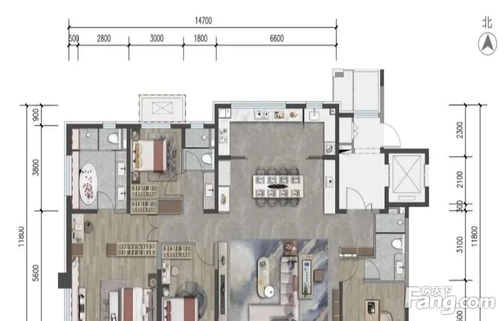 房屋拥有相对宽松的尺寸,布局通透,动静分离,设计豪华。