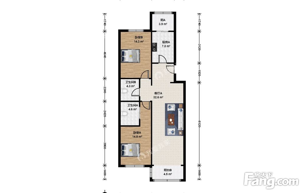 2室1厅2卫