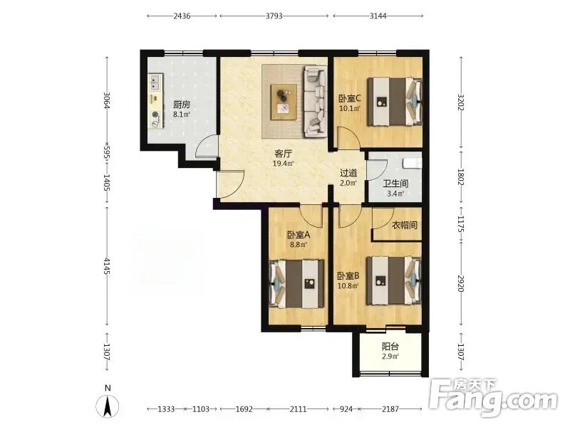 首开康乃馨城 3室1厅 88.81平 南北通透户型方正采光好