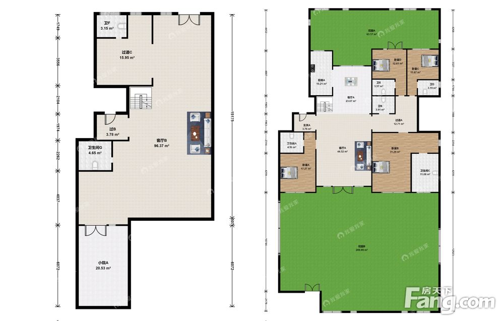 天著春秋,使用面积370平,花园260平,看房有钥匙
