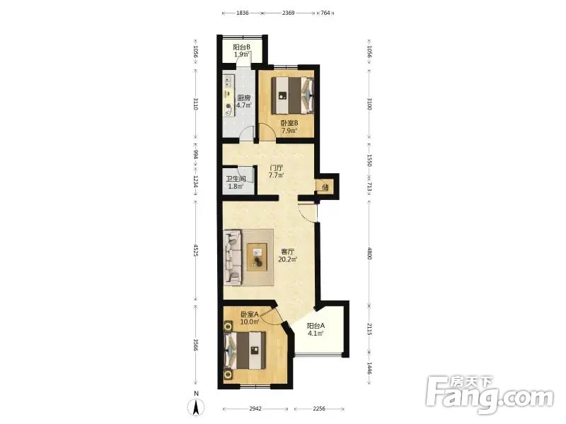 2.朝向:南北,房间采光是没任何问题的。