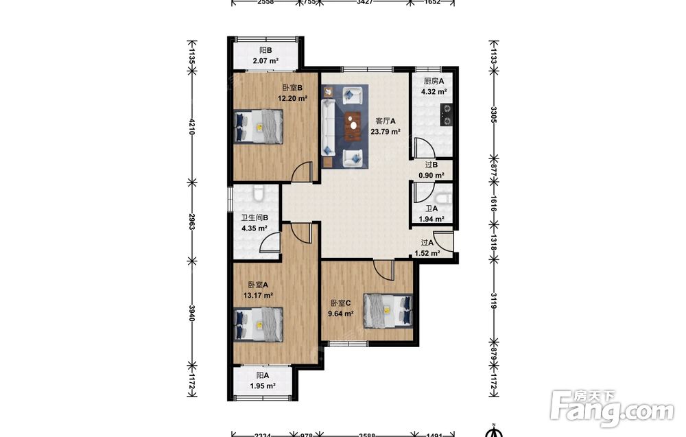 3室1厅2卫