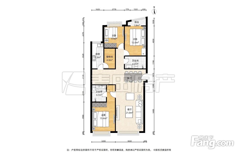 房屋年代∶2004,面积∶132.3平方米,朝向∶南北
