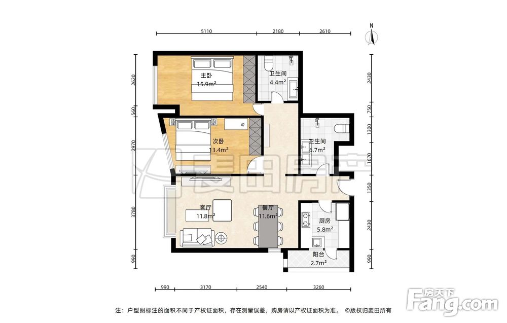 2室1厅2卫
