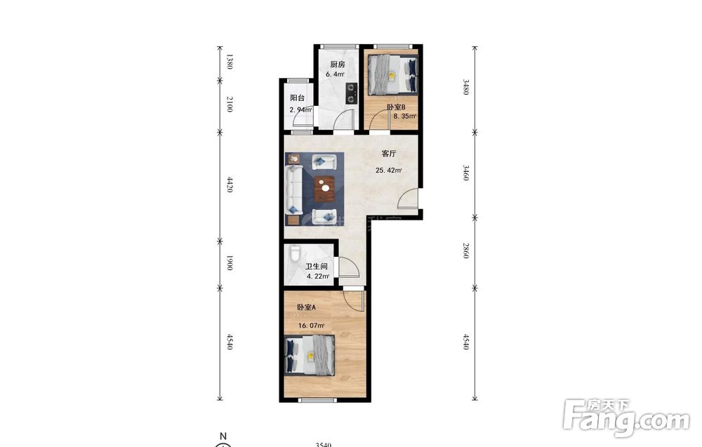 地铁5号线旁 南北两居 无遮挡好房。