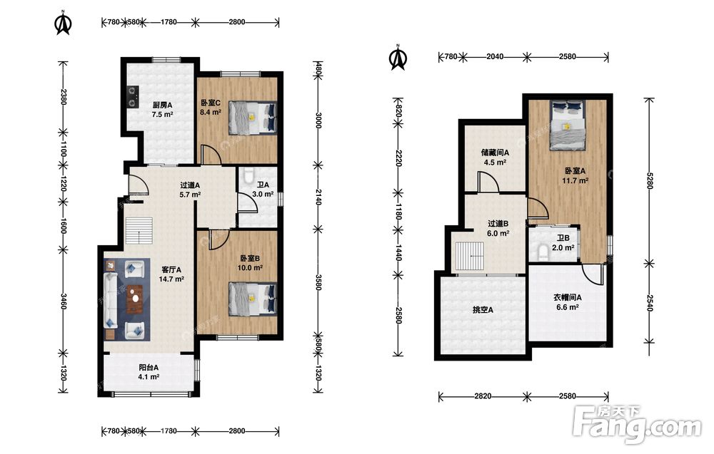小复式。三居二卫,明厨明卫,采光视野好