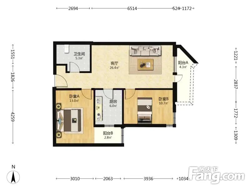 自营房源:东向大两居 配套设施完善 大客厅 大阳台