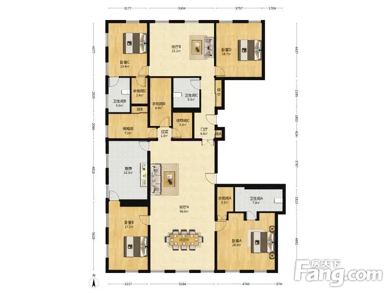 房屋拥有相对宽松的尺寸,布局通透,动静分离,设计豪华