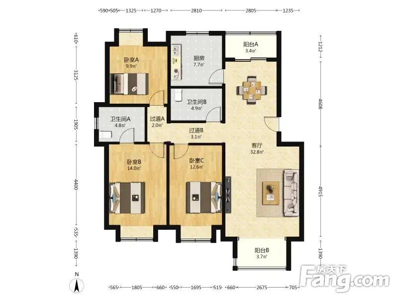 富锦嘉园一区 3室1厅 126.11平