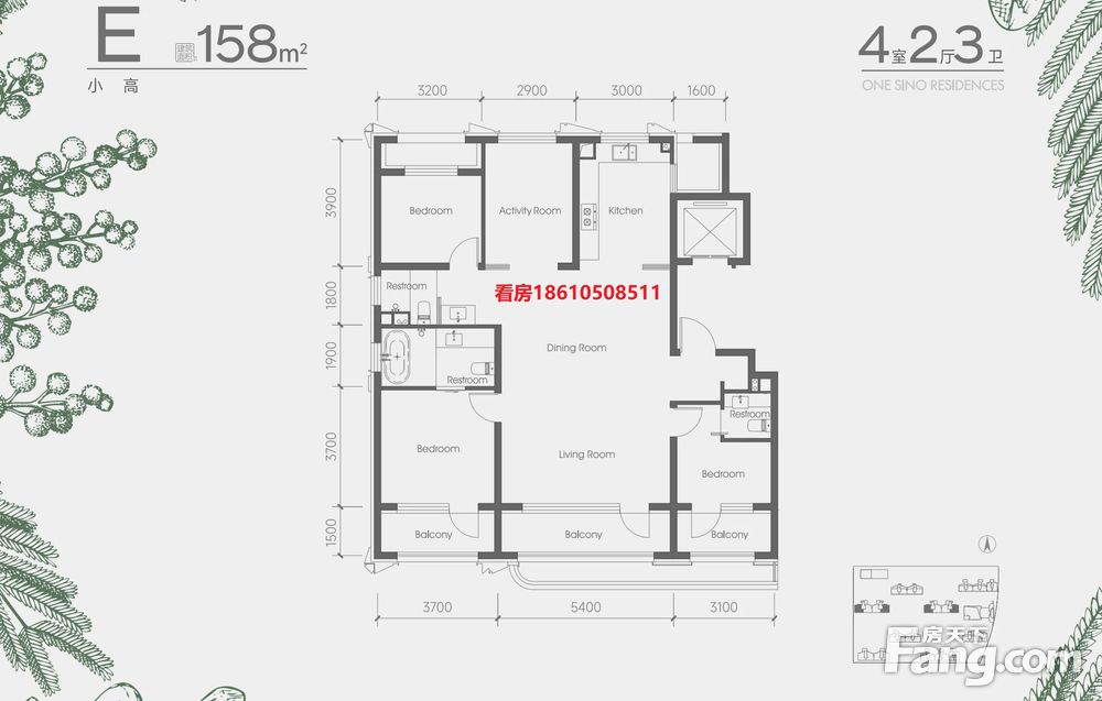 【建面158㎡4居】1600-1760万,4室2厅3卫, 南·北朝向