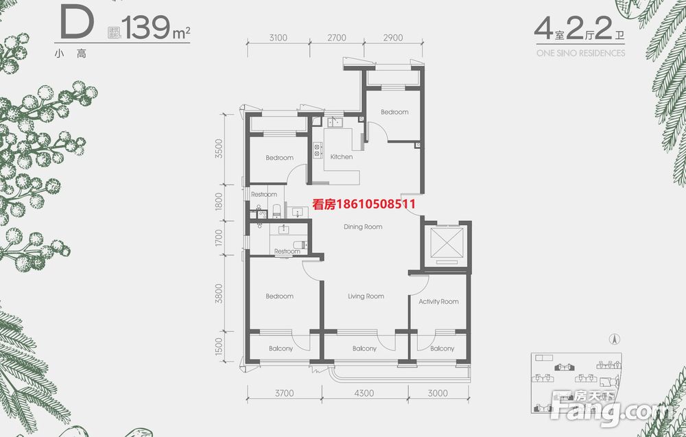 【建面139㎡4居】1280-1500万,4室2厅2卫, 南·北朝向