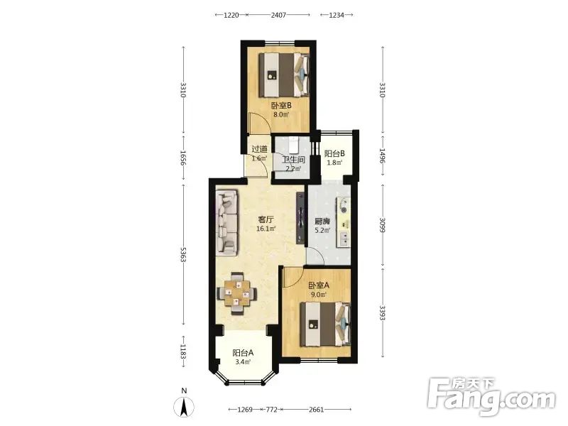 (买房零拥)金沟河5号院 二室 南北 全明格局 户型方正