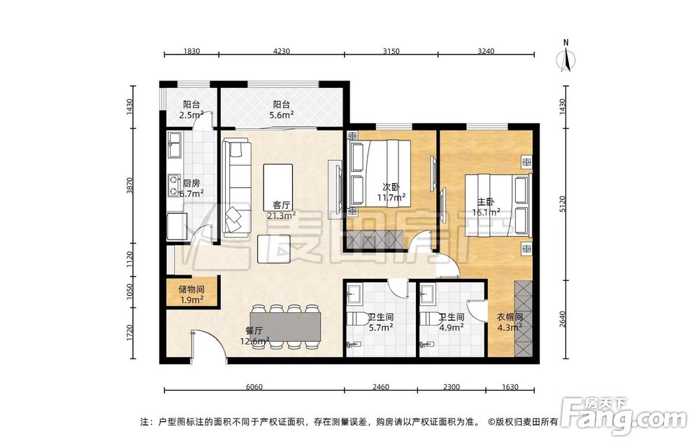 房屋年代∶2005,面积∶118.66平方米,朝向∶南