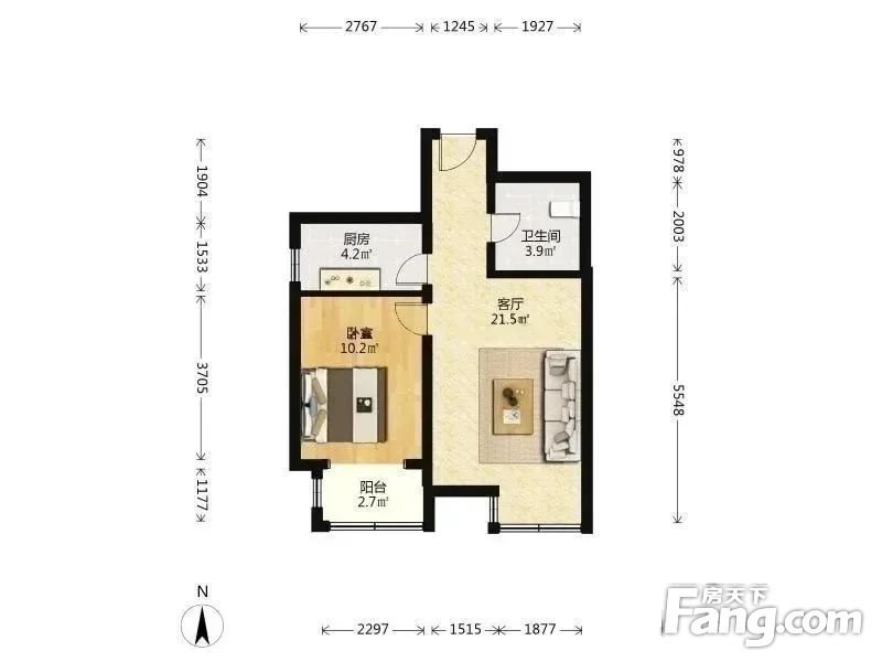 户型:1室1厅 ,朝向:南,格局方正,使用率超赞