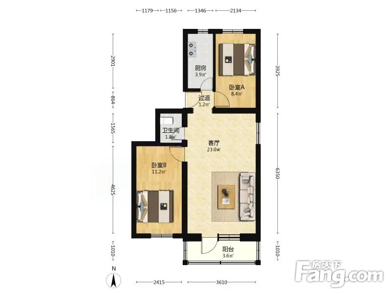 1.此房面积69.04平方米,格局方正,没有浪费空间。